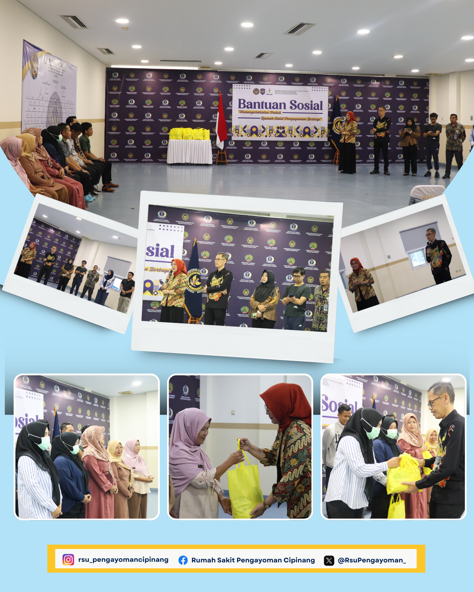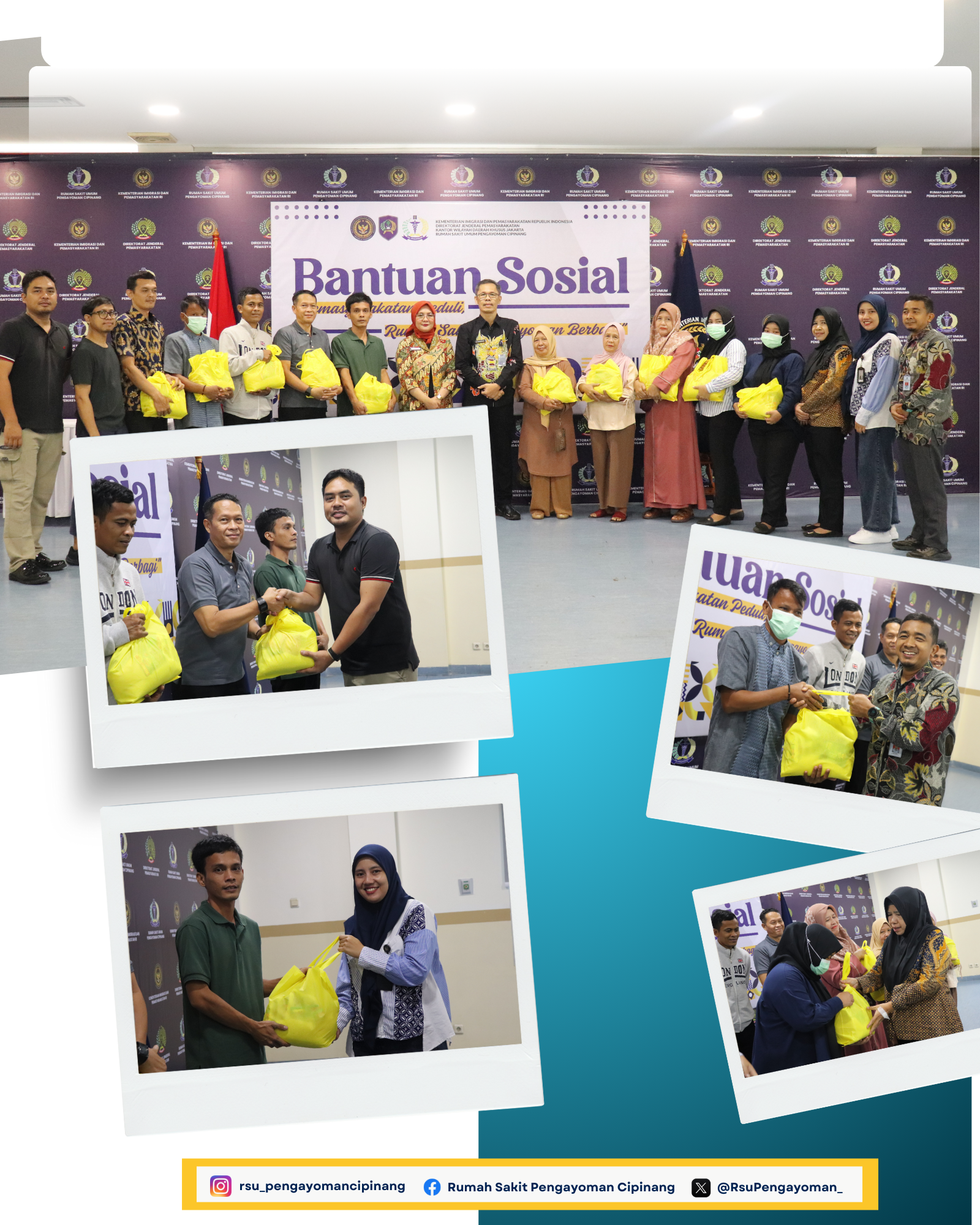 Kepala RSU Pengayoman Cipinang, dr.Ummu Salamah beserta jajaran menyerahkan bantuan sosial untuk masyarakat di sekitar rumah sakit sebagai Implementasi Program Akselerasi Menteri Imigrasi dan Pemasyarakatan pada poin ke 4 yaitu Bantuan Sosial kepada keluarga warga binaan dan masyarakat di sekitar area UPT Pemasyarakatan.