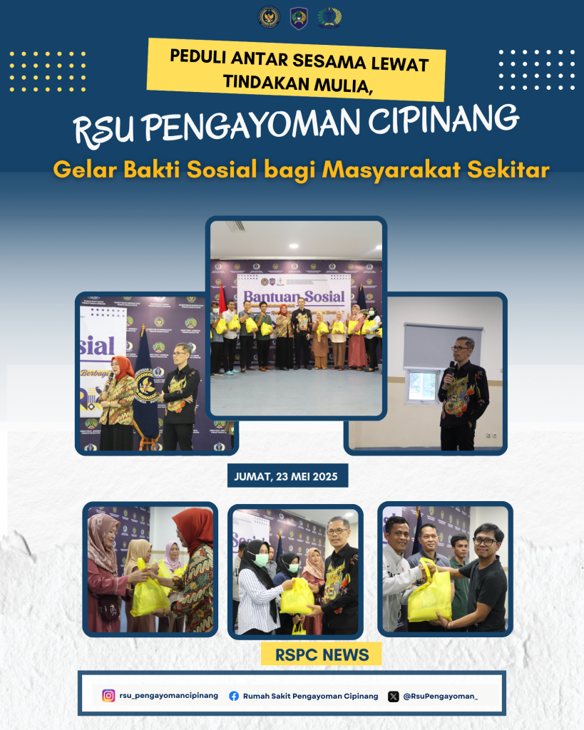 RSU Pengayoman Cipinang menggelar kegiatan Bakti Sosial berbagi kepada masyarakat dalam rangka kegiatan Pemasyarakatan Peduli, Rumah Sakit Pengayoman Berbagi” yang bertempat di Aula lantai 2 RSU Pengayoman Cipinang, Jumat (23/05).