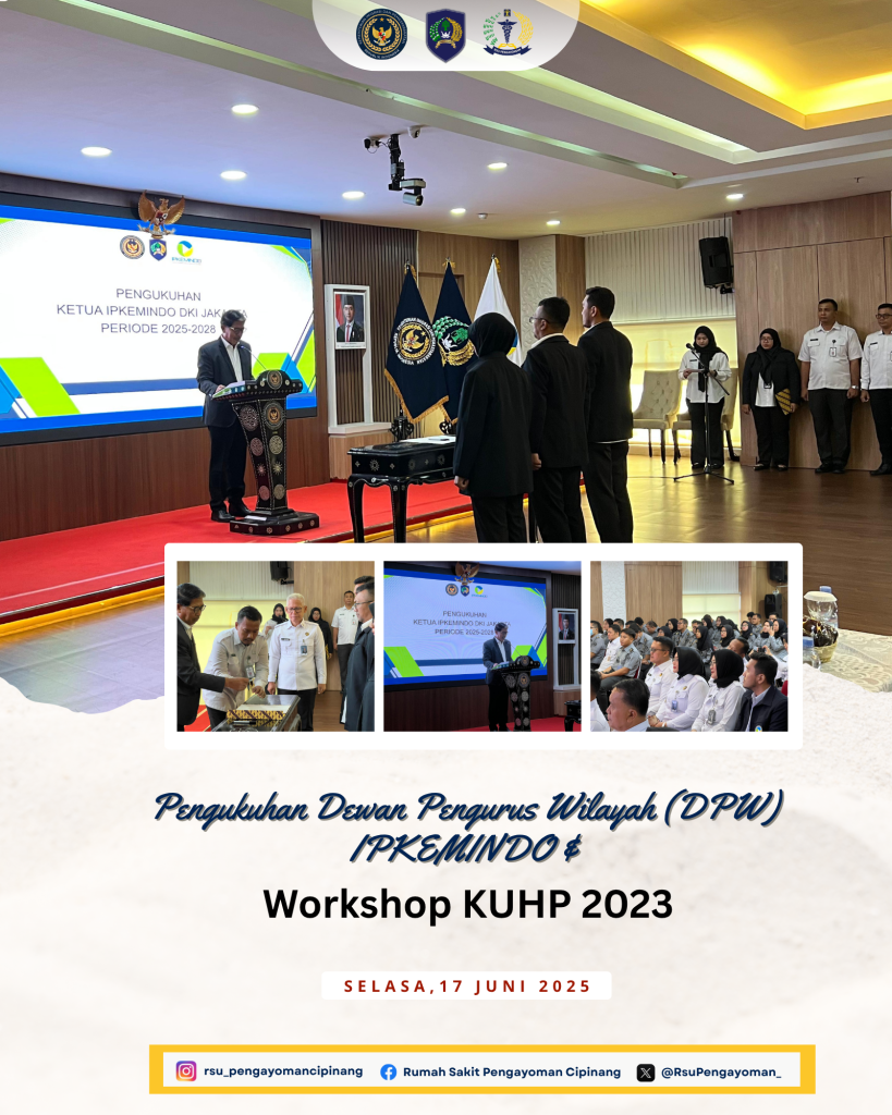 Kepala RSU Pengayoman Cipinang, dr.Ummu Salamah menghadiri kegiatan Pengukuhan Dewan Pengurus Wilayah (DPW) IPKEMINDO dan Workshop KUHP 2023, Senin (17/06).