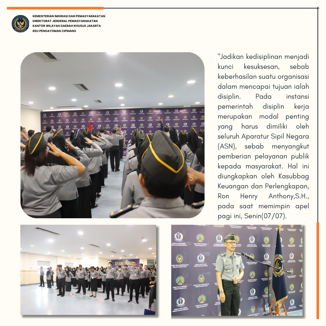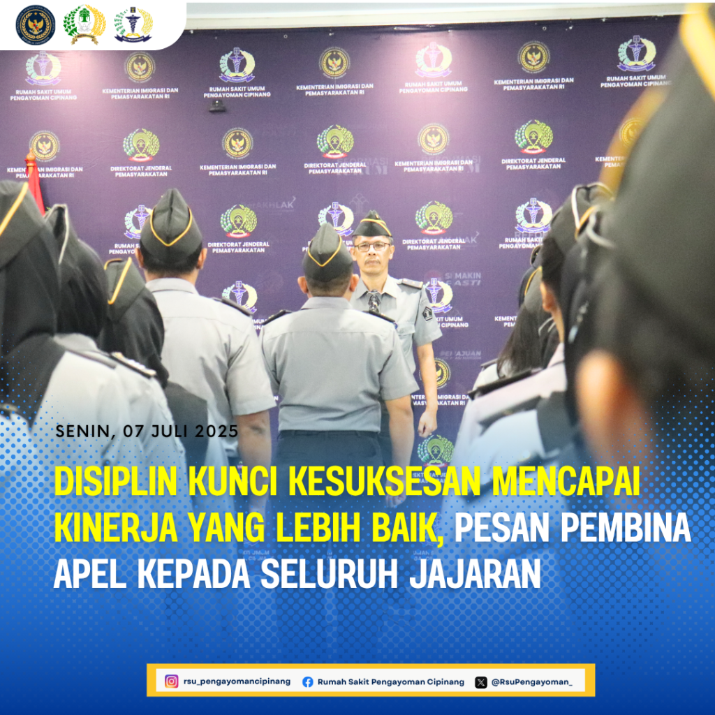Beliau juga menekankan pentingnya kedisiplinan sebagai cerminan profesionalisme dan tanggungjawab dalam menjalankan tugas. “Kedisiplinan harus dijaga dalam bekerja, karena merupakan kunci keberhasilan dalam setiap pekerjaan,” tegas Ron Henry. Ia berharap dengan meningkatkan kedisiplinan, kualitas pelayanan kepada masyarakat dan warga binaan dapat semakin baik. Ron Henry juga memberikan apresiasi atas kinerja seluruh pegawai, mendorong mereka untuk terus berinovasi dan beradaptasi dengan perkembangan yang ada. Melalui apel pagi rutin dan mendengarkan arahan dari pimpinan, diharapkan tidak hanya meningkatkan motivasi pegawai, tetapi juga membangun kepercayaan masyarakat terhadap RSU Pengayoman Cipinang sebagai rumah sakit yang profesional dan bertanggung jawab.