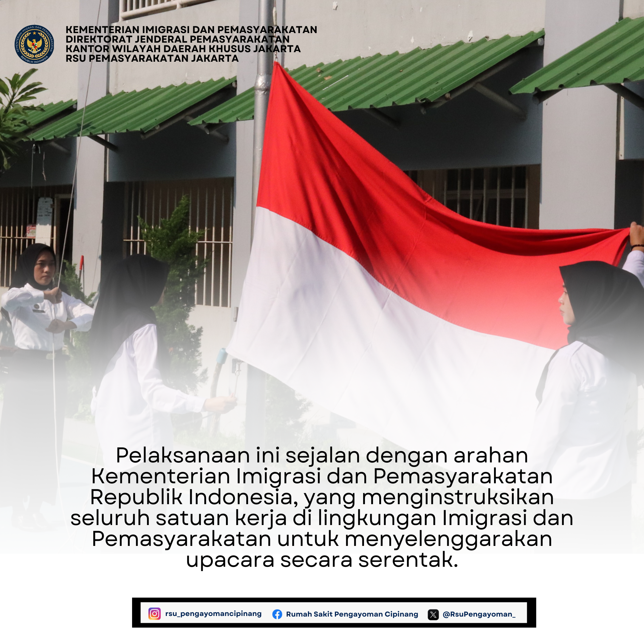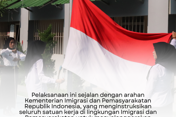Pelaksanaan ini sejalan dengan arahan Kementerian Imigrasi dan Pemasyarakatan Republik Indonesia, yang menginstruksikan seluruh satuan kerja di lingkungan Imigrasi dan Pemasyarakatan untuk menyelenggarakan upacara secara serentak.