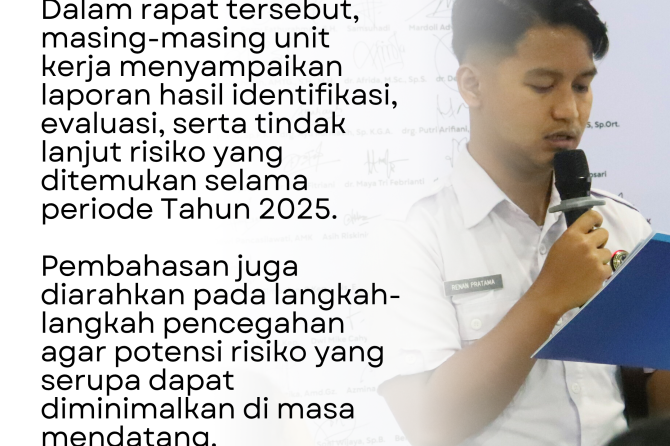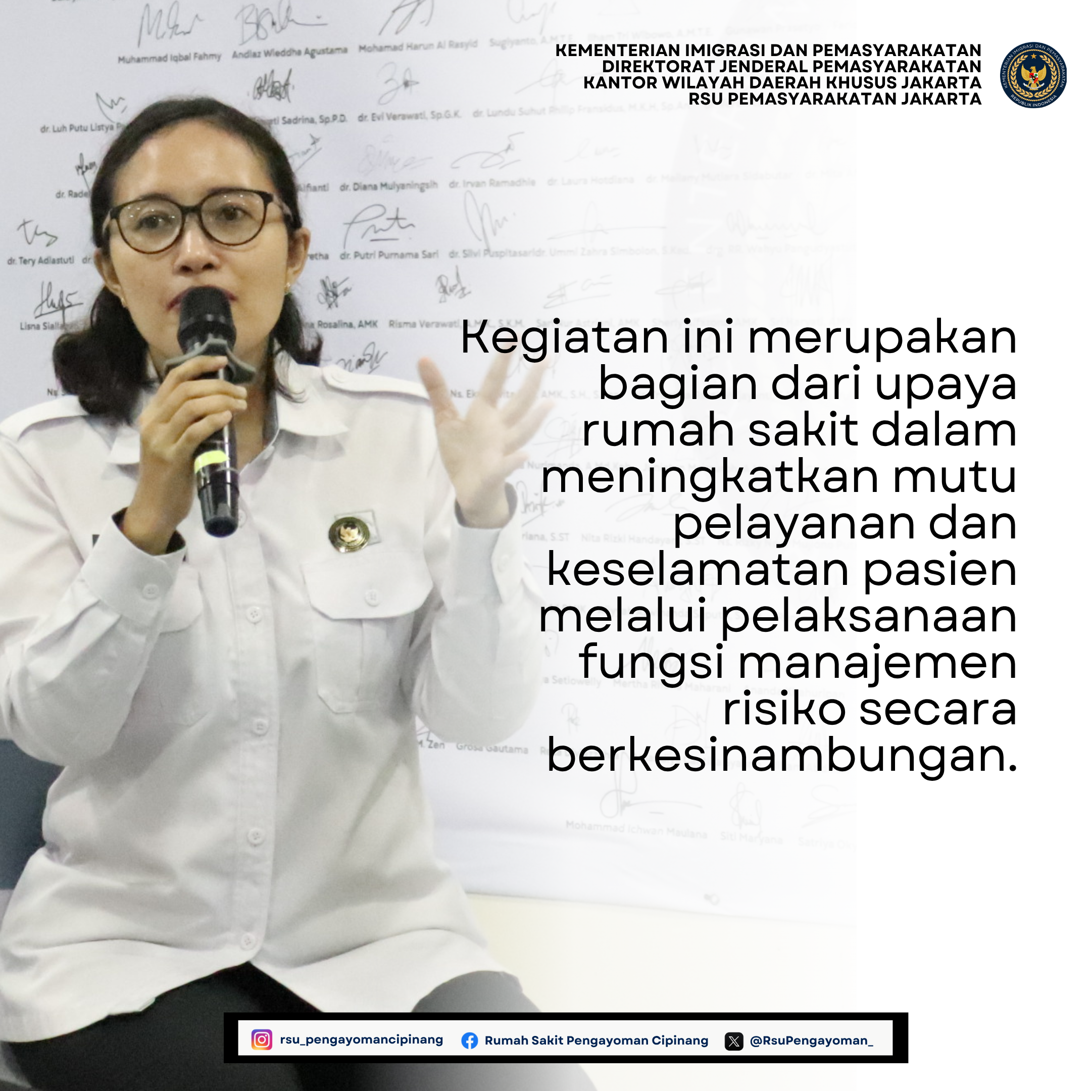 Kegiatan ini merupakan bagian dari upaya rumah sakit dalam meningkatkan mutu pelayanan dan keselamatan pasien melalui pelaksanaan fungsi manajemen risiko secara berkesinambungan.