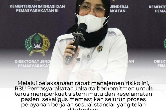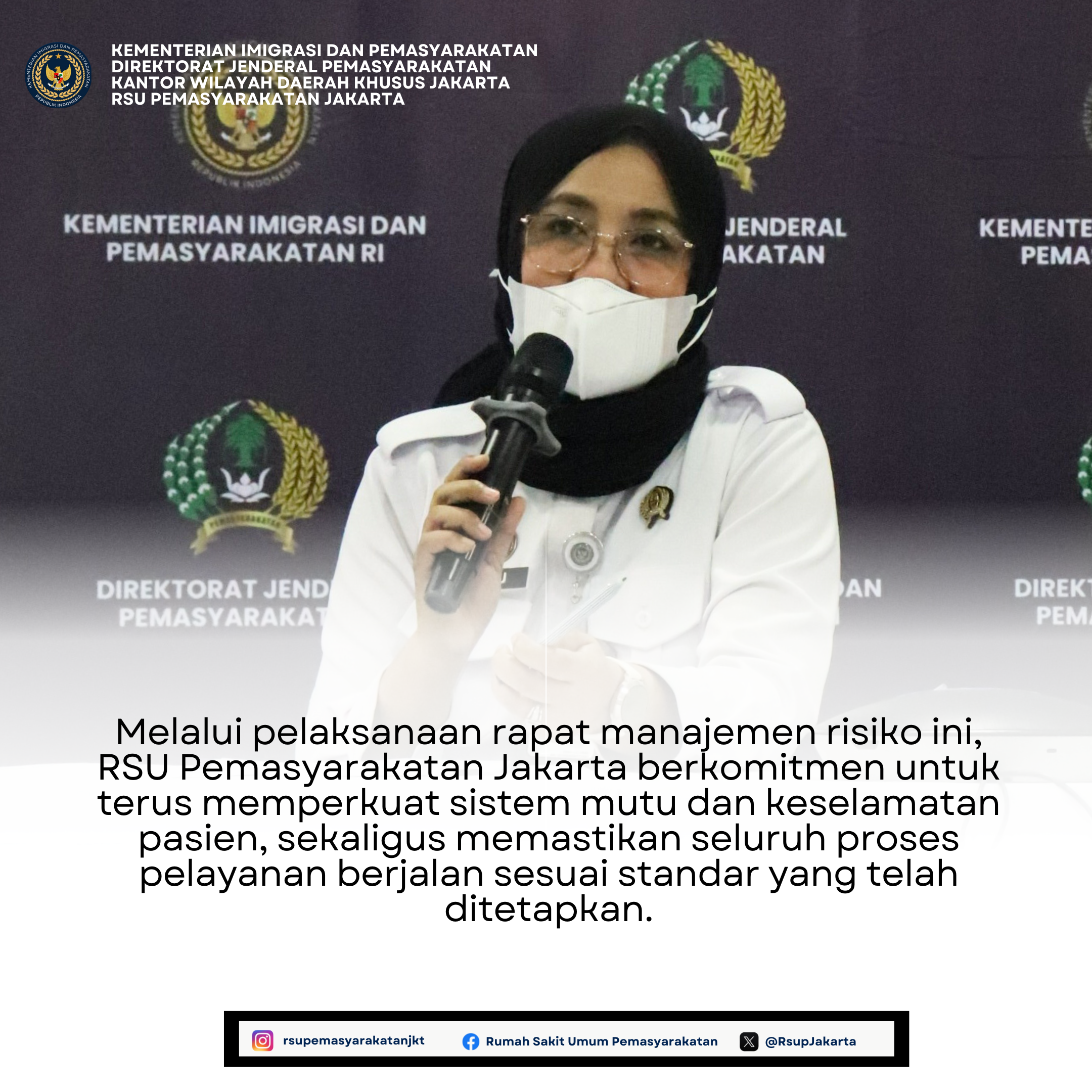 Melalui pelaksanaan rapat manajemen risiko ini, RSU Pemasyarakatan Jakarta berkomitmen untuk terus memperkuat sistem mutu dan keselamatan pasien, sekaligus memastikan seluruh proses pelayanan berjalan sesuai standar yang telah ditetapkan.