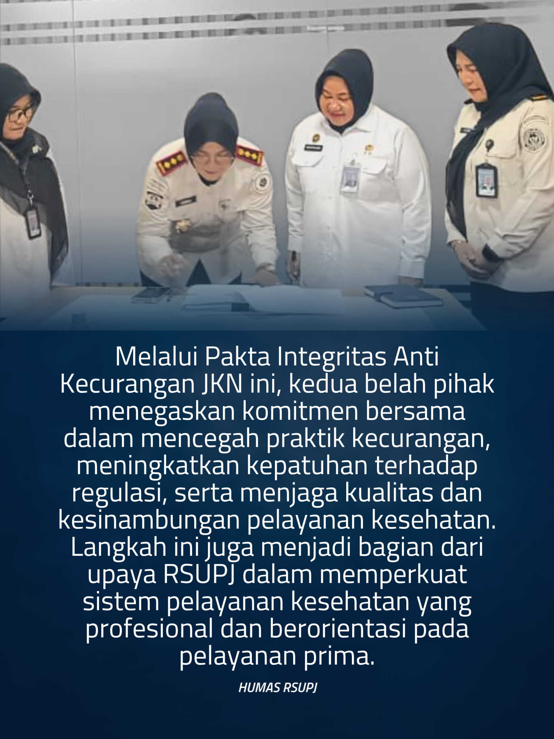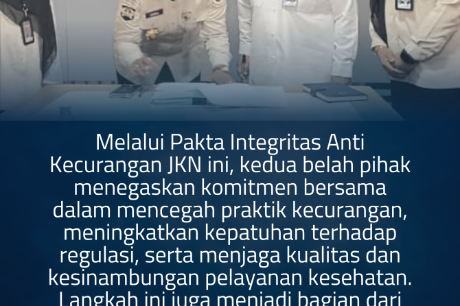 Melalui Pakta Integritas Anti Kecurangan JKN ini, kedua belah pihak menegaskan komitmen bersama dalam mencegah praktik kecurangan, meningkatkan kepatuhan terhadap regulasi, serta menjaga kualitas dan kesinambungan pelayanan kesehatan. Langkah ini juga menjadi bagian dari upaya RSUPJ dalam memperkuat sistem pelayanan kesehatan yang profesional dan berorientasi pada pelayanan prima.