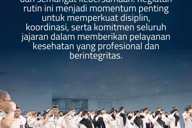 Apel pagi pegawai RSU Pemasyarakatan Jakarta dilaksanakan di Aula 1 rumah sakit pada hari ini dengan penuh khidmat dan semangat kebersamaan. Kegiatan rutin ini menjadi momentum penting untuk memperkuat disiplin, koordinasi, serta komitmen seluruh jajaran dalam memberikan pelayanan kesehatan yang profesional dan berintegritas.