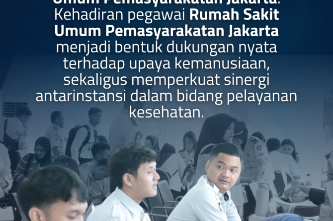 Kegiatan donor darah ini diikuti oleh berbagai unsur pegawai di lingkungan pemasyarakatan, termasuk partisipasi aktif dari pegawai RSU Pemasyarakatan Jakarta. Kehadiran pegawai RSU Pemasyarakatan Jakarta menjadi bentuk dukungan nyata terhadap upaya kemanusiaan, sekaligus memperkuat sinergi antarinstansi dalam bidang pelayanan kesehatan.