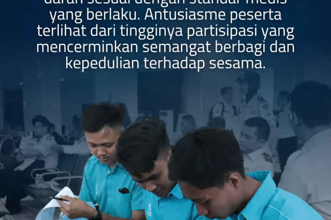 Pelaksanaan kegiatan berlangsung dengan tertib dan lancar, diawali dengan proses registrasi, pemeriksaan kesehatan, hingga pelaksanaan donor darah sesuai dengan standar medis yang berlaku. Antusiasme peserta terlihat dari tingginya partisipasi yang mencerminkan semangat berbagi dan kepedulian terhadap sesama.
